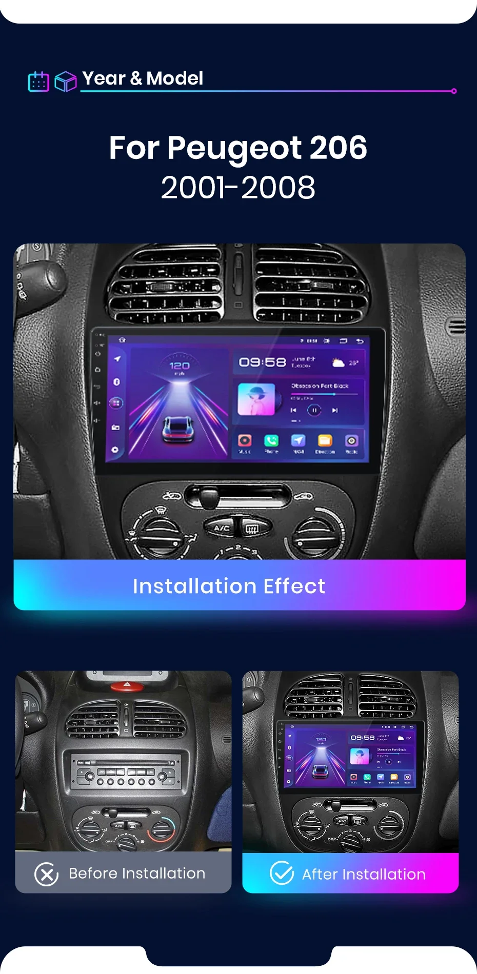 CarPlay - Peugeot 206 206CC 206SW 2001-2008