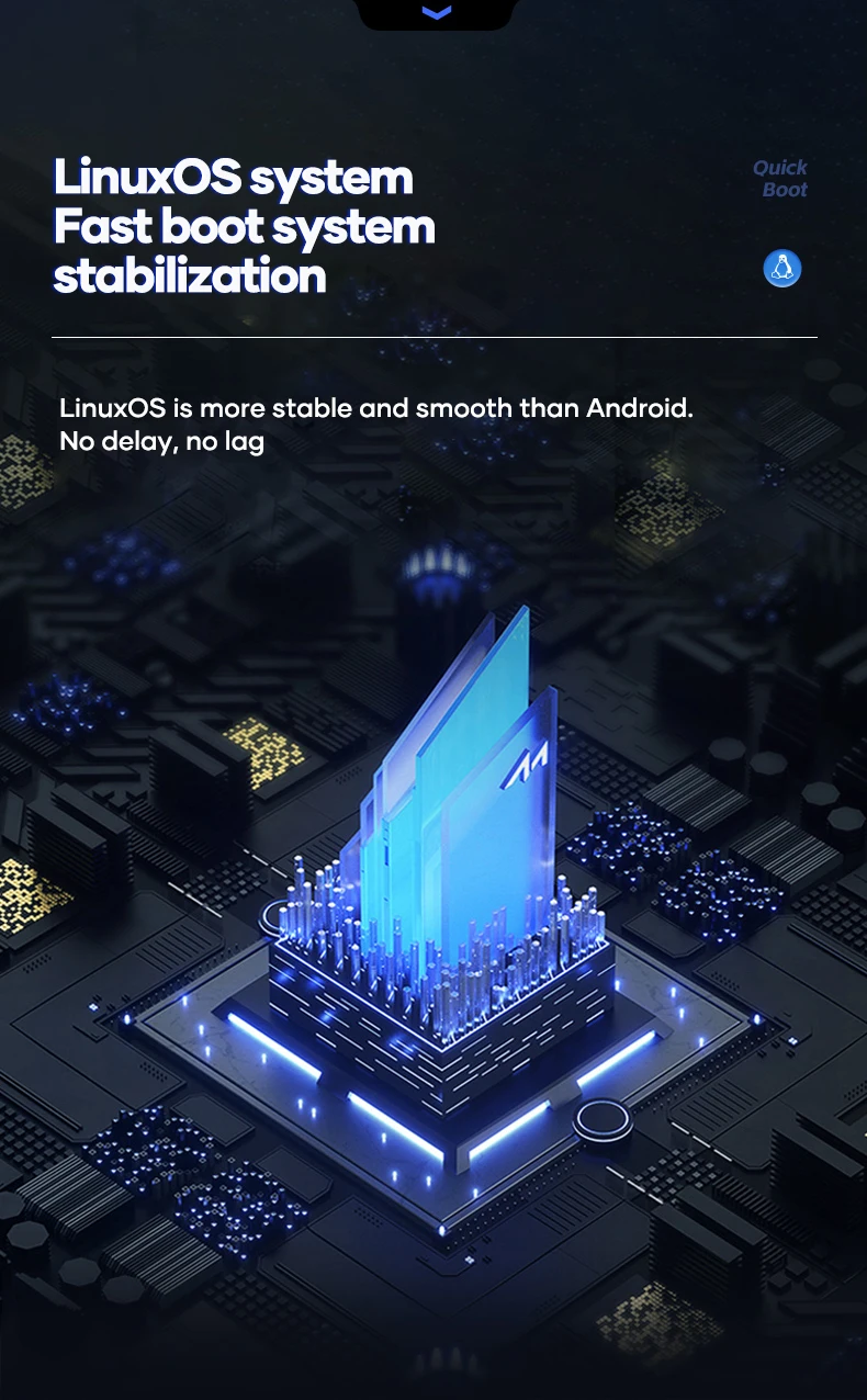 Système d’exploitation Linux embarqué : stabilité, sécurité, démarrage rapide (< 2 secondes).