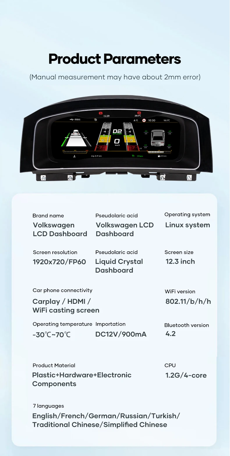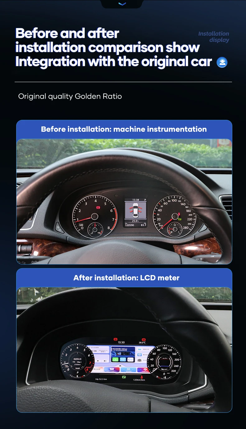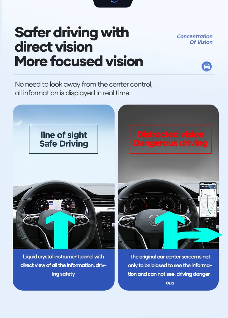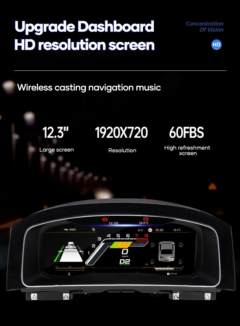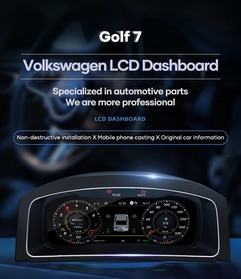 Tableau de bord numérique LCD 12,3 pouces pour VW Golf 7 / MK7 (2013–2020)