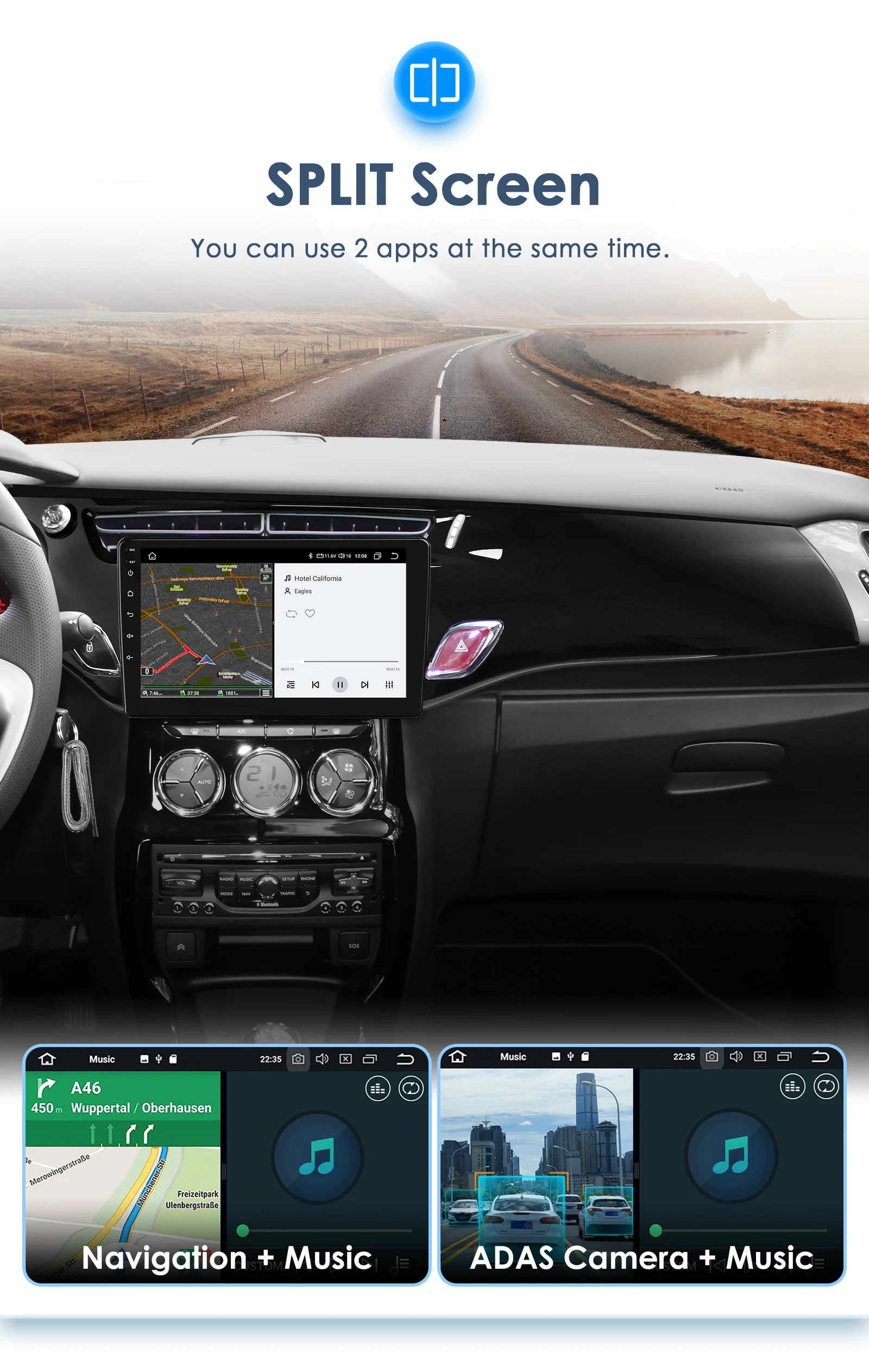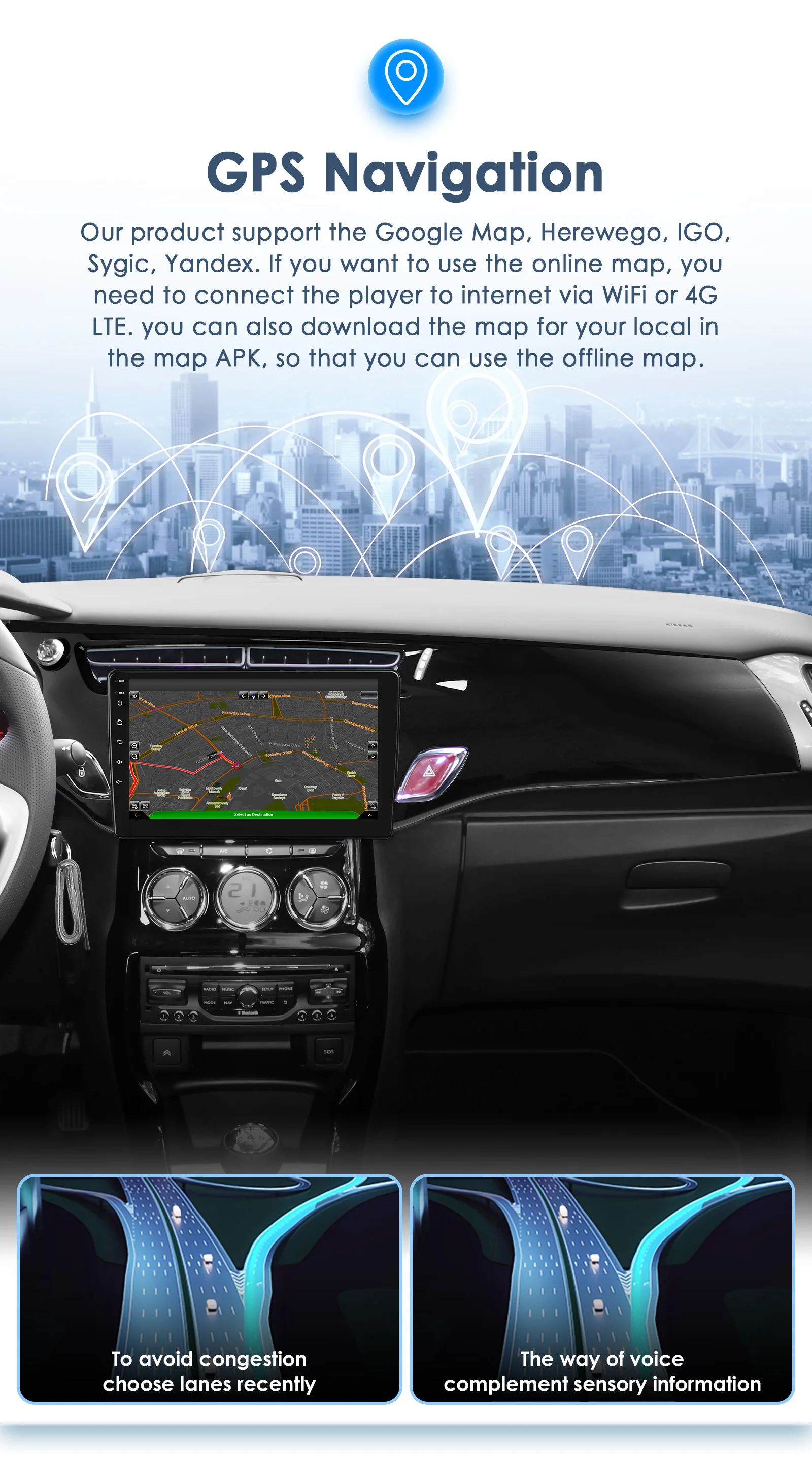 Autoradio GPS multimédia 2DIN : écran Android Auto pour voiture