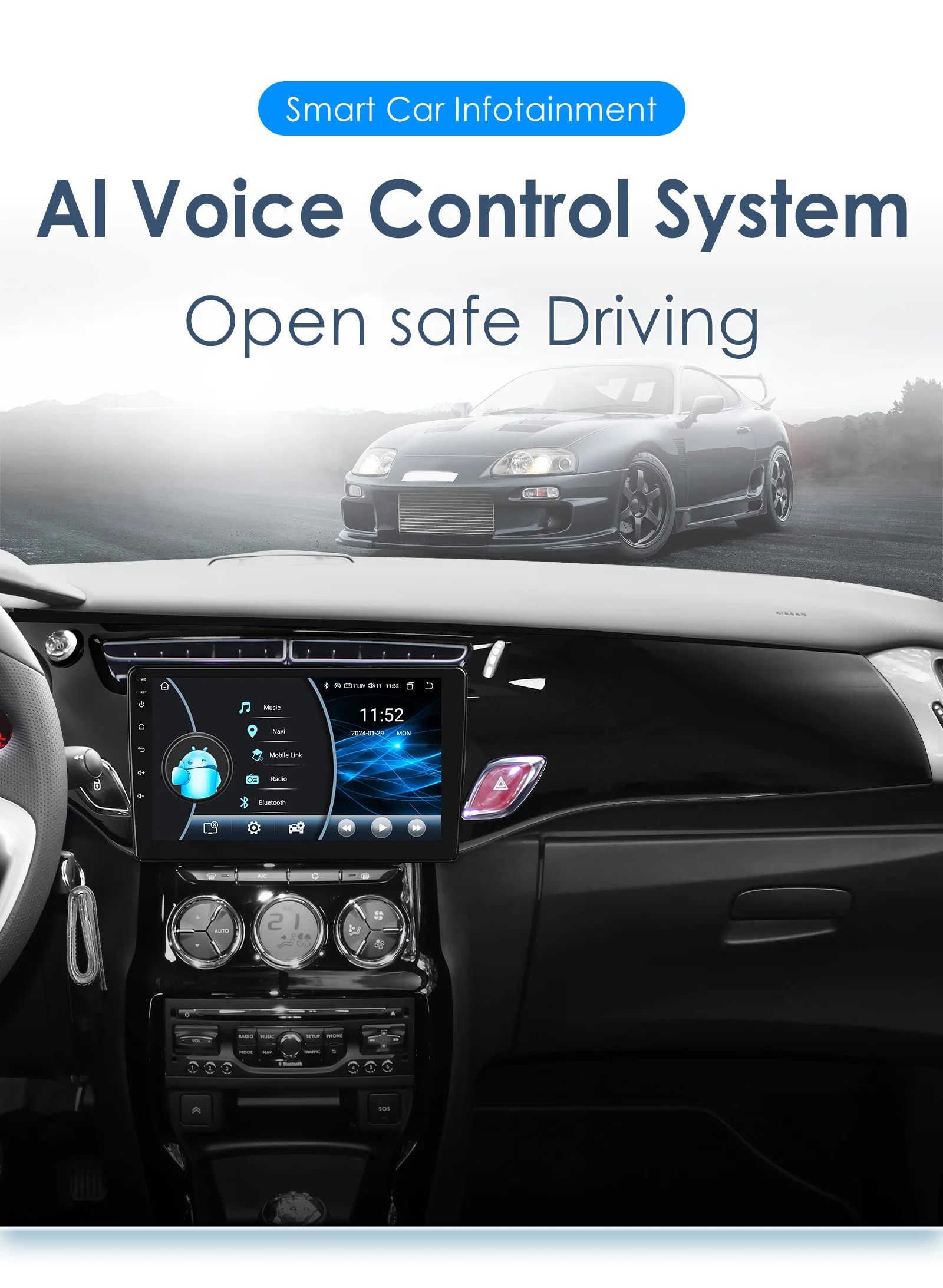 Système intelligent IA : radio pour voiture avec Bluetooth, multimédia automobile